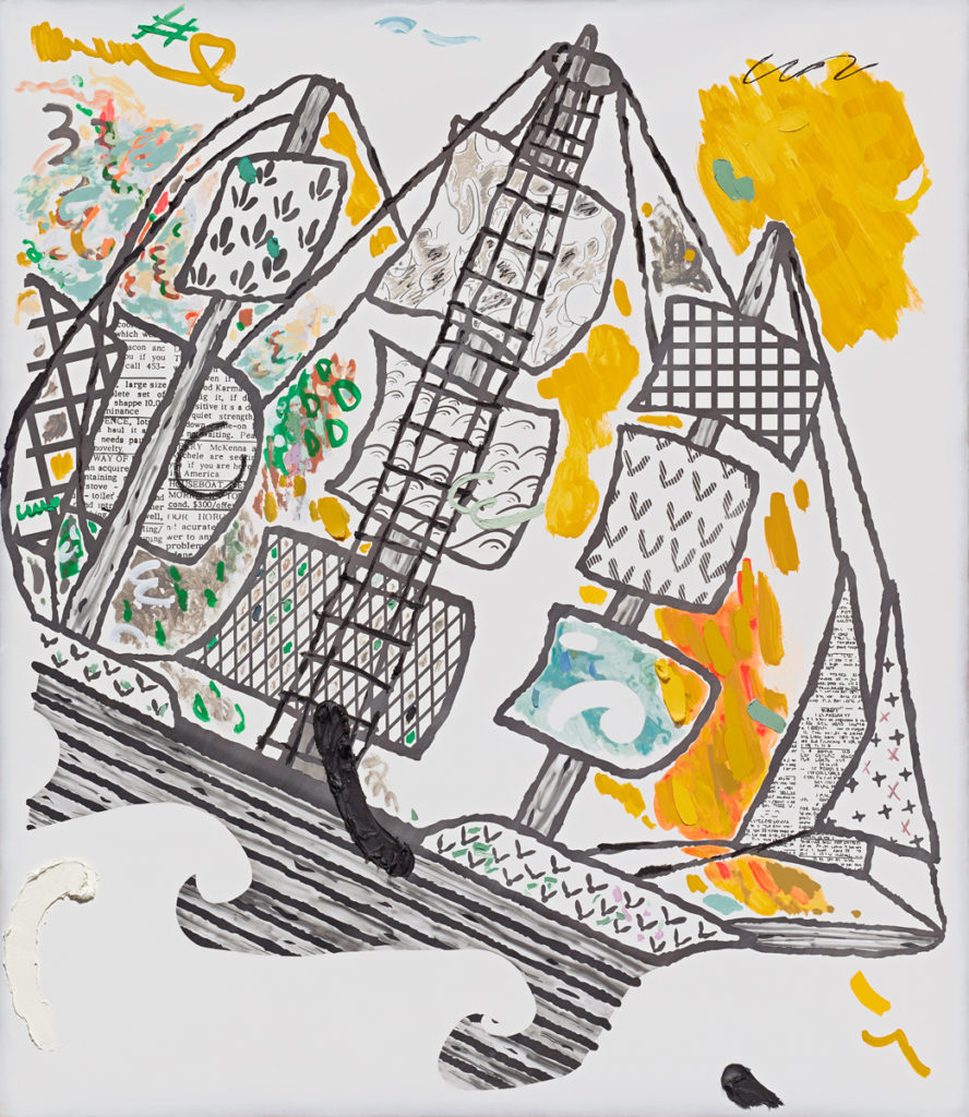 , 2013, Acrylic, oil, Flashe, and charcoal on linen, 137.5 x 120"